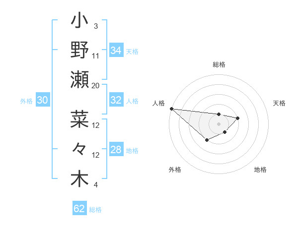 小野瀬 菜々木さんを姓名の画数から五運を鑑定