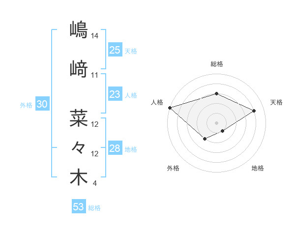 嶋﨑 菜々木さんを姓名の画数から五運を鑑定