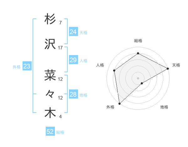 杉沢 菜々木さんを姓名の画数から五運を鑑定