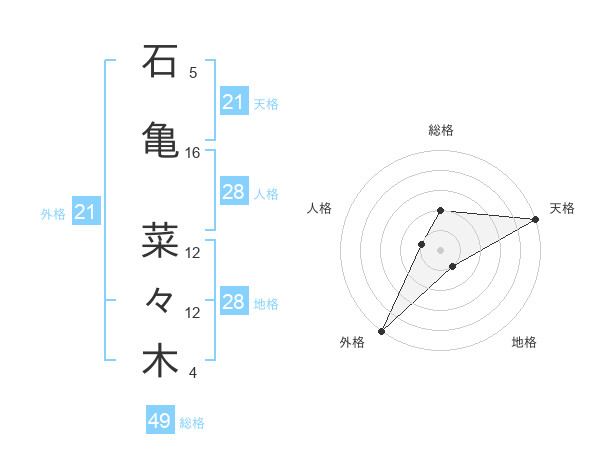 石亀 菜々木さんを姓名の画数から五運を鑑定
