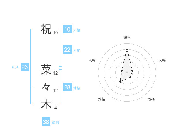 祝 菜々木さんを姓名の画数から五運を鑑定