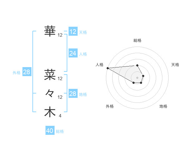 華 菜々木さんの地格は28画の1点!