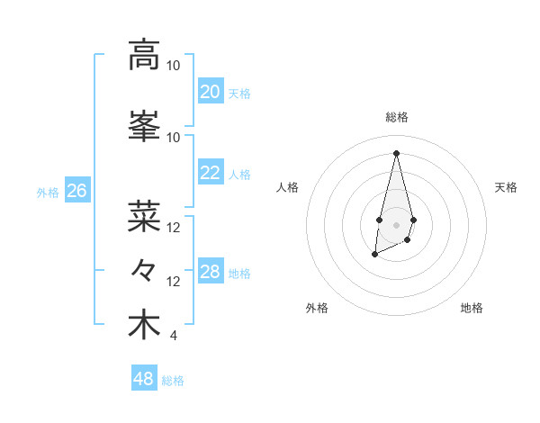 高峯 菜々木さんを姓名の画数から五運を鑑定
