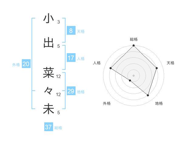 小出 菜々未さんを姓名の画数から五運を鑑定