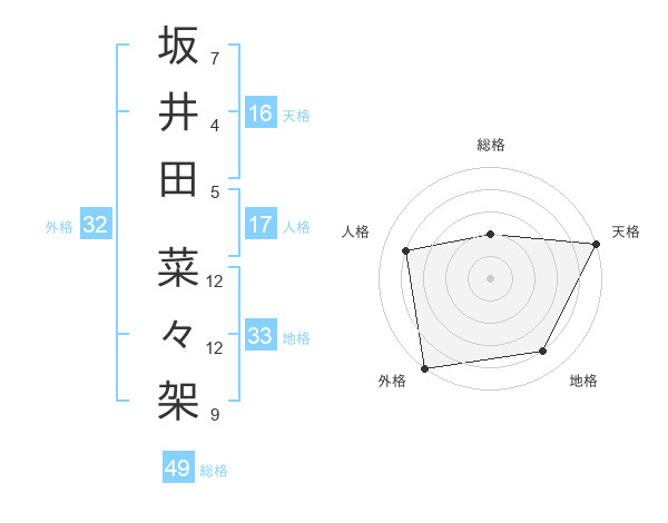 坂井田 菜々架さんを姓名の画数から五運を鑑定