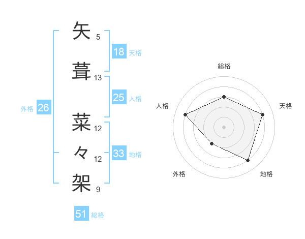 矢葺 菜々架さんを姓名の画数から五運を鑑定