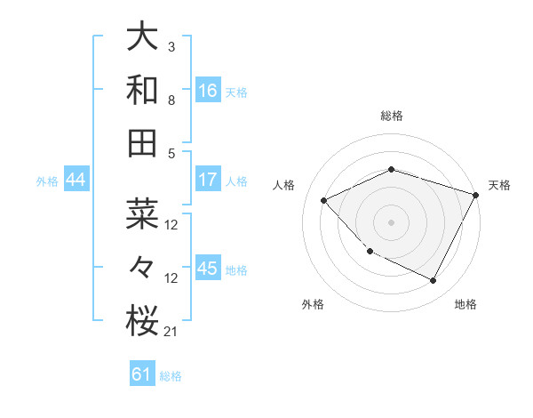 大和田 菜々桜さんの総格は61画の3点