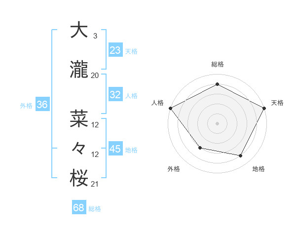 大瀧 菜々桜さんを姓名の画数から五運を鑑定