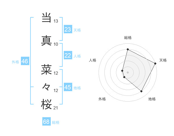 当真 菜々桜さんを姓名の画数から五運を鑑定