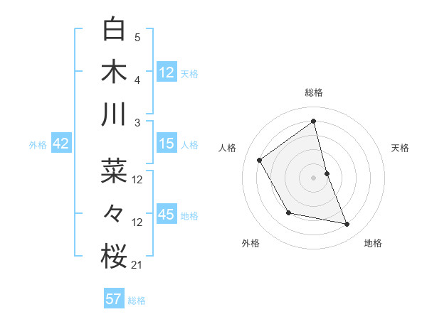 白木川 菜々桜さんを姓名の画数から五運を鑑定