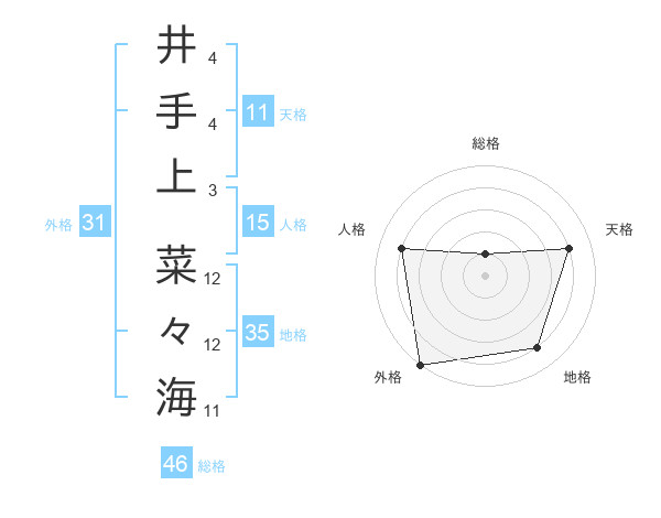 井手上 菜々海さんを姓名の画数から五運を鑑定