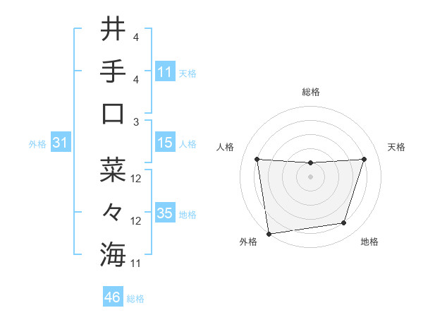 井手口 菜々海さんの総格は46画の1点!