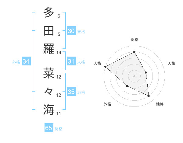 多田羅 菜々海さんを姓名の画数から五運を鑑定