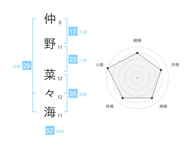 仲野 菜々海さんを姓名の画数から五運を鑑定