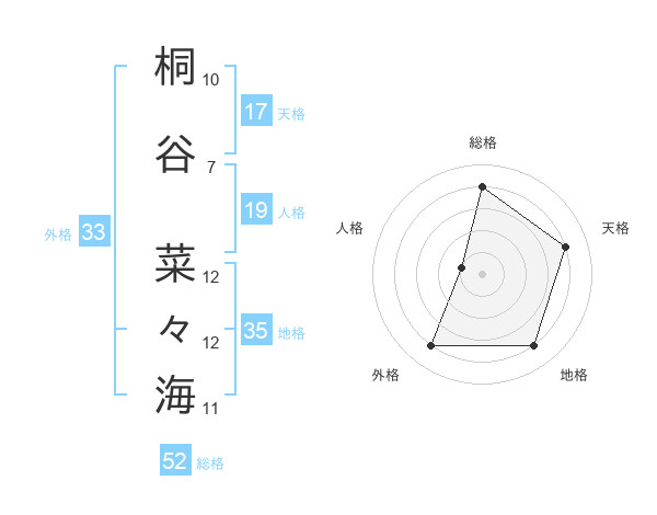 桐谷 菜々海さんを姓名の画数から五運を鑑定