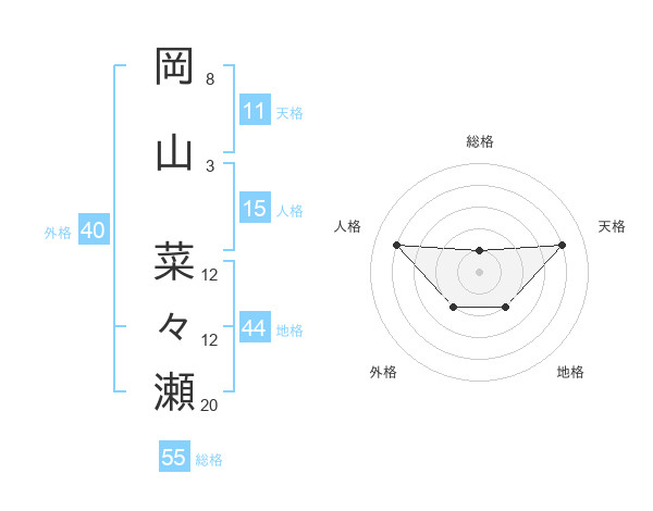 岡山 菜々瀬さんの総格は55画の1点