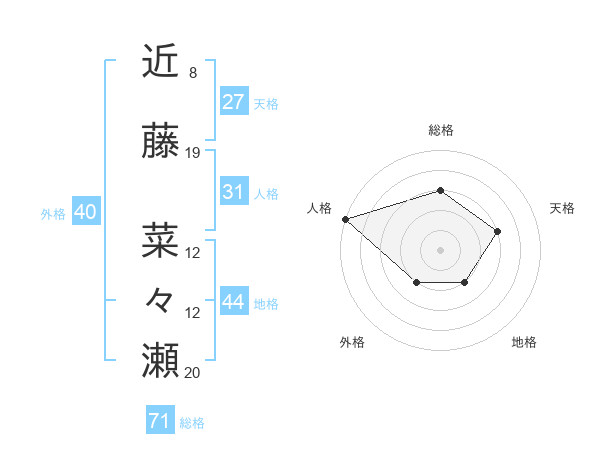 近藤 菜々瀬さんの総格は71画の3点