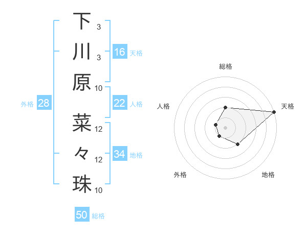 下川原 菜々珠さんを姓名の画数から五運を鑑定
