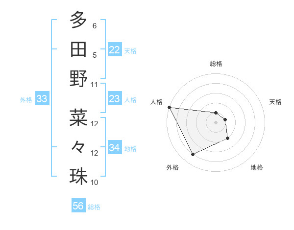多田野 菜々珠さんを姓名の画数から五運を鑑定