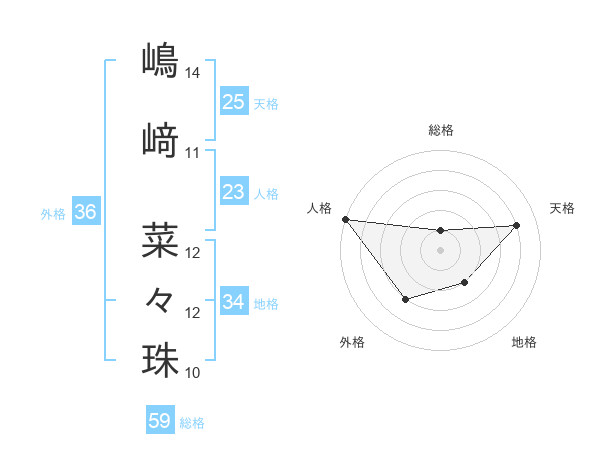 嶋﨑 菜々珠さんの総格は59画の1点!