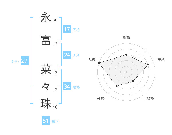 永富 菜々珠さんを姓名の画数から五運を鑑定