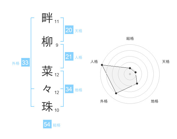 畔柳 菜々珠さんの総格は54画の1点!