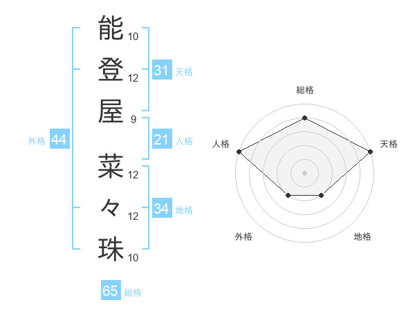 能登屋 菜々珠さんを姓名の画数から五運を鑑定