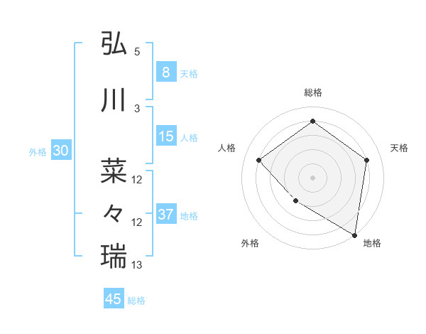 弘川 菜々瑞さんの総格は45画の4点