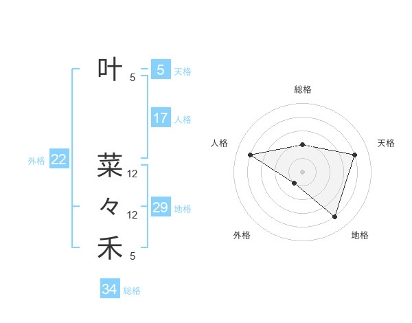 叶 菜々禾さんを姓名の画数から五運を鑑定
