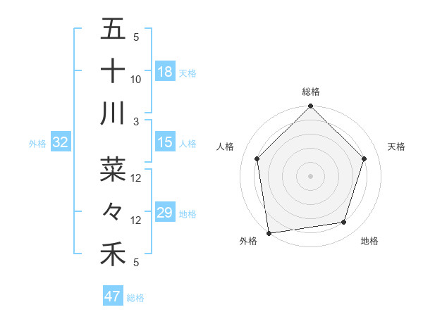 五十川 菜々禾さんを姓名の画数から五運を鑑定