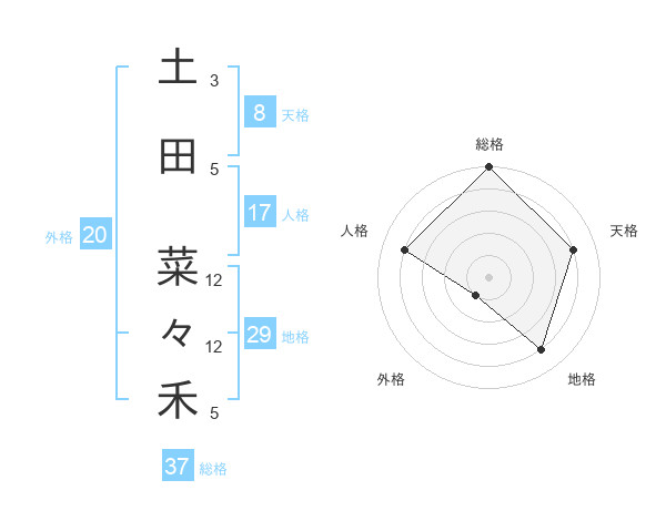 土田 菜々禾さんを姓名の画数から五運を鑑定