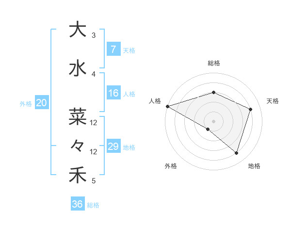 大水 菜々禾さんを姓名の画数から五運を鑑定