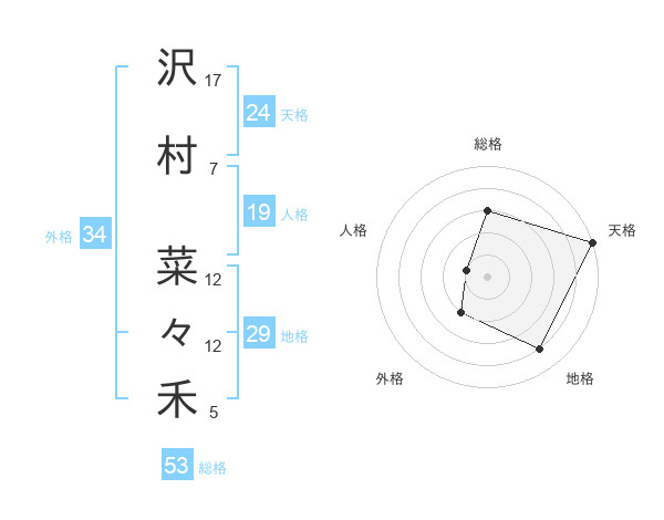 沢村 菜々禾さんの天格は24画の5点!