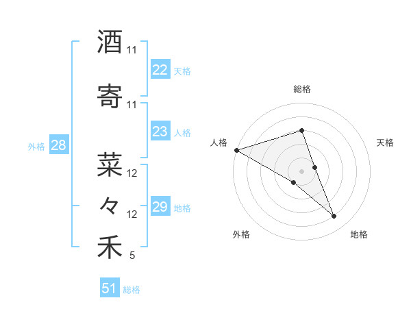 酒寄 菜々禾さんの総格は51画の3点!