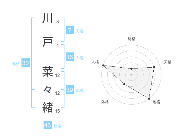 川戸 菜々緒さんを姓名の画数から五運を鑑定
