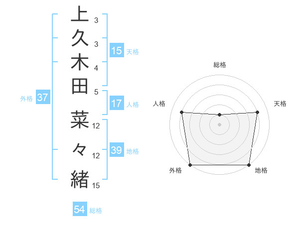 上久木田 菜々緒さんを姓名の画数から五運を鑑定
