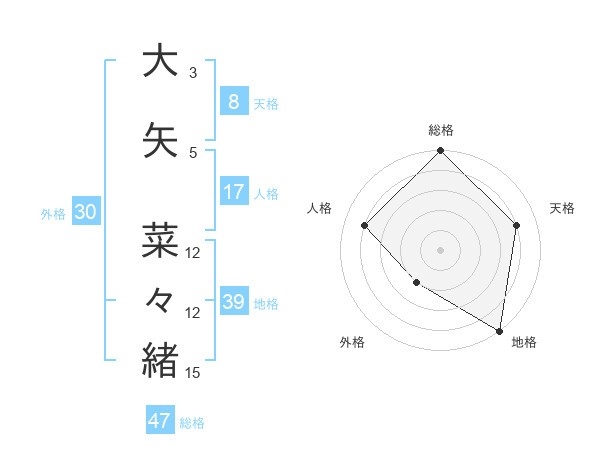 大矢 菜々緒さんを姓名の画数から五運を鑑定