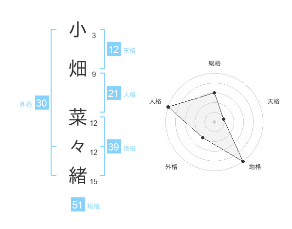 小畑 菜々緒さんを姓名の画数から五運を鑑定