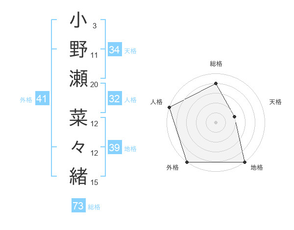 小野瀬 菜々緒さんを姓名の画数から五運を鑑定
