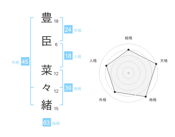 豊臣 菜々緒さんの総格は63画の4点!