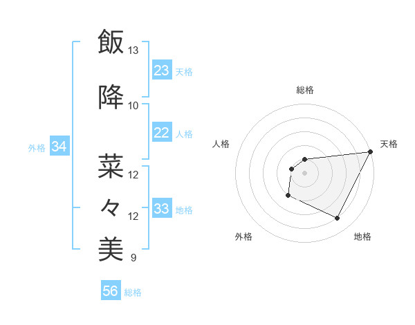 飯降 菜々美さんを姓名の画数から五運を鑑定