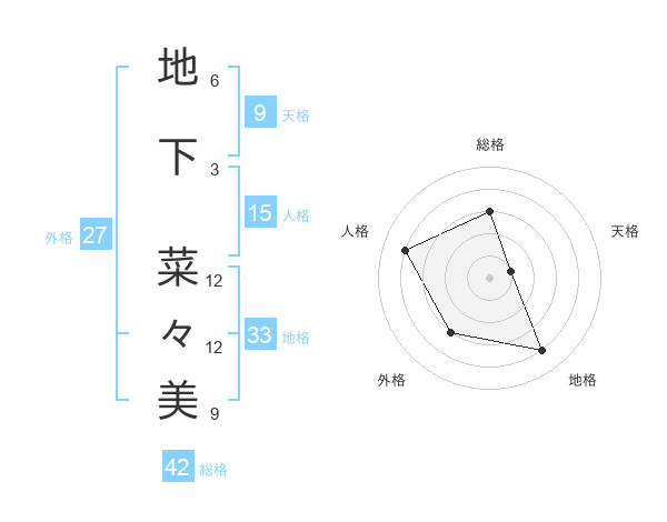 地下 菜々美さんを姓名の画数から五運を鑑定