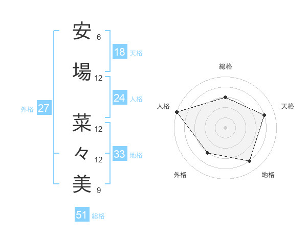 安場 菜々美さんの総格は51画の3点!