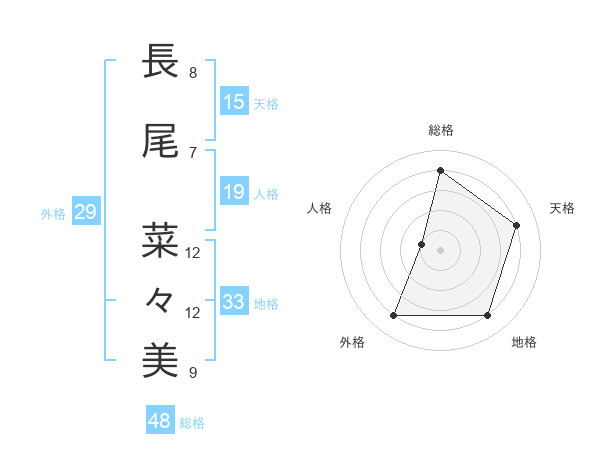 長尾 菜々美さんを姓名の画数から五運を鑑定
