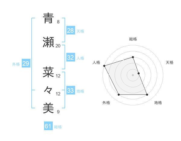 青瀬 菜々美さんの総格は61画の3点!