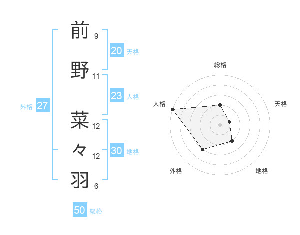 前野 菜々羽さんを姓名の画数から五運を鑑定