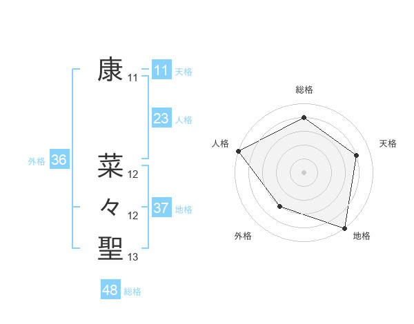 康 菜々聖さんの総格は48画の4点!
