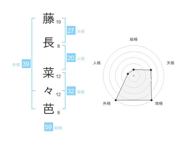 藤長 菜々芭さんの外格は39画の5点!