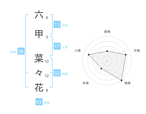 六甲 菜々花さんの天格は11画の4点!