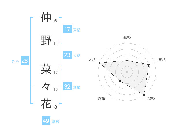 仲野 菜々花さんの総格は49画の2点!